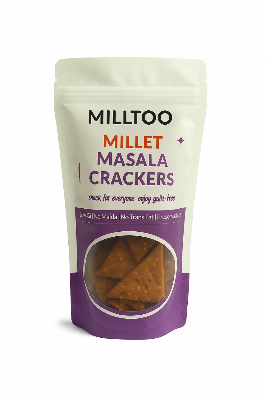 Milltoo offers a delicious range of millet-based snacks that blend traditional Indian flavors with modern nutrition. From protein-packed Cocoa Bars and crunchy Millet Chikki to tangy Tomato Jowar Puffs, hearty Granola Bars, bold Masala Crackers, and wholesome Millet Khakhras — each product is crafted using clean, natural ingredients with no preservatives. High in fiber and rich in nutrients, Milltoo snacks are perfect for guilt-free munching anytime, anywhere. Rediscover snacking, the millet way.…